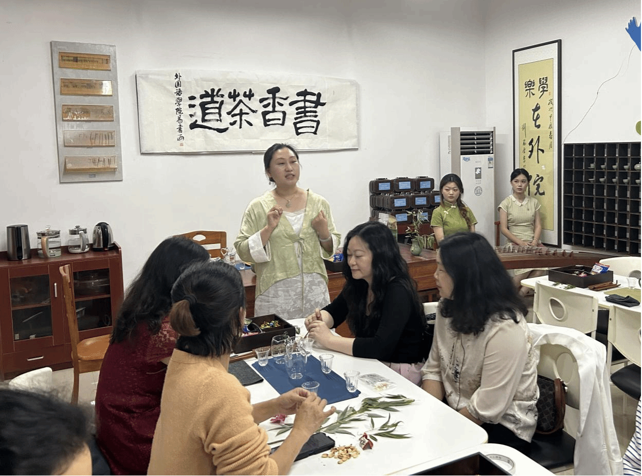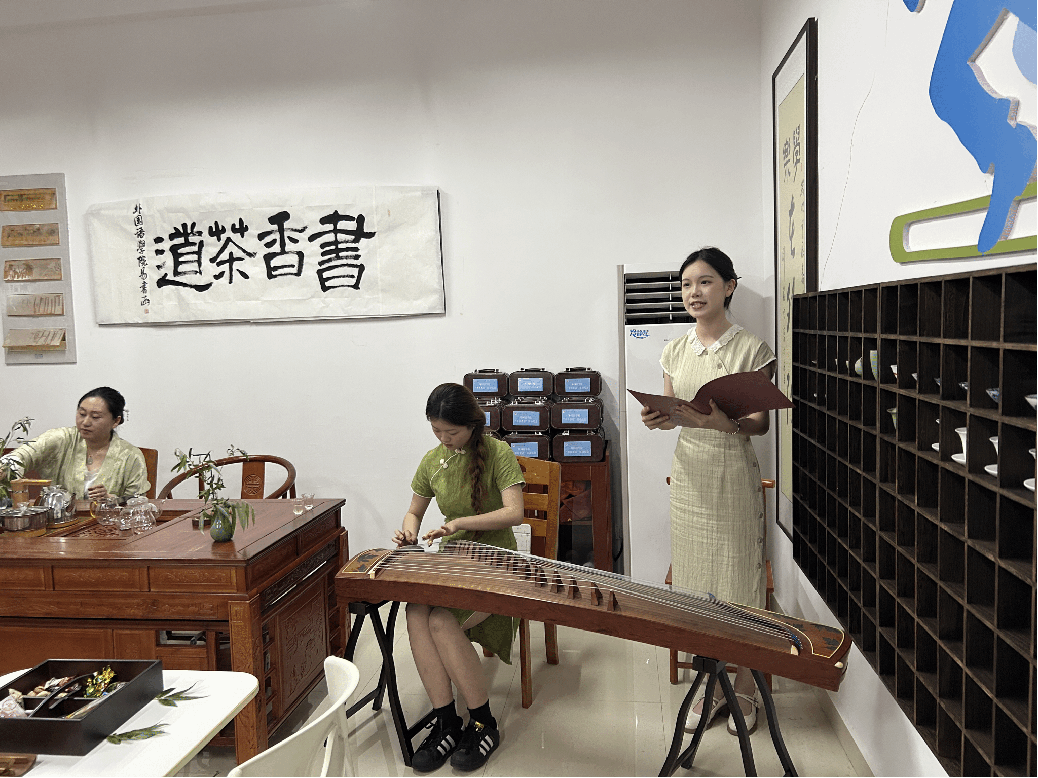 学院工会组织开展了“书香茶道”活动。活动以明前茶的文化渊源为切入点,详细介绍春茶的独特价值和地域特点,并现场演示冲泡技艺,解读传统茶文化中“时节”与“匠心”内涵。在互动实践环节,教职工们亲手冲泡绿茶,体验“凤凰三点头”等传统手法,切身感受茶文化的礼仪美与哲理韵。活动中,古筝演奏《茉莉花》与诗词吟诵《西江月·茶词》《望江南·超然台作》交相辉映,现场茶香四溢、书声琅琅,在放松身心的同时增强了教职工的文化认同感和集体凝聚力。