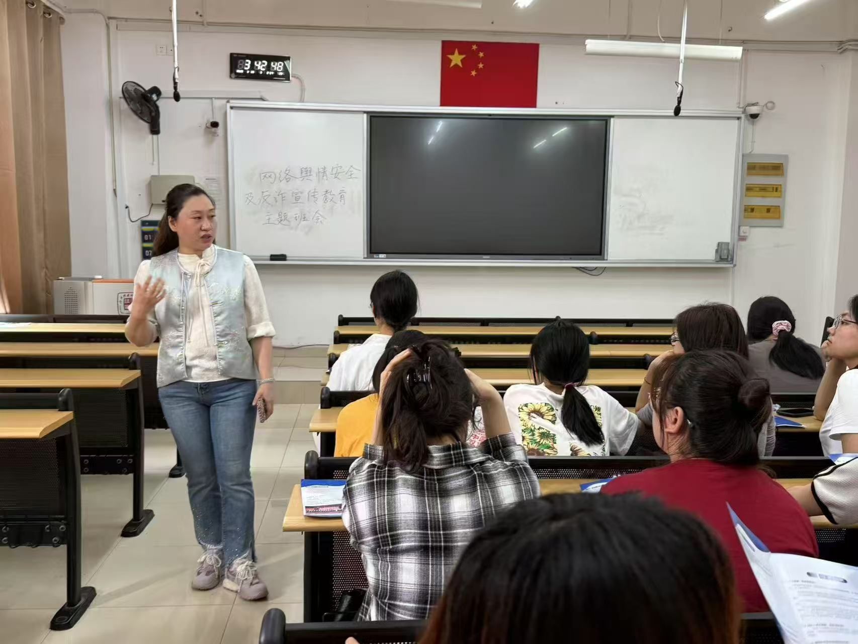 辅导员通过播放教育短片,结合“科学用网、提升素养”等相关内容,引导学生识别网络诈骗手段、强化信息安全意识,提高风险应对能力。互动环节,辅导员组织学生围绕“如何践行公约要求”展开深入讨论,加深学生对公约的理解。学生纷纷表示通过教育对《新时代青少年网络文明公约》有了更深刻的理解,并将在社交平台、网络社群中自觉遵守公约规范,主动践行文明准则。