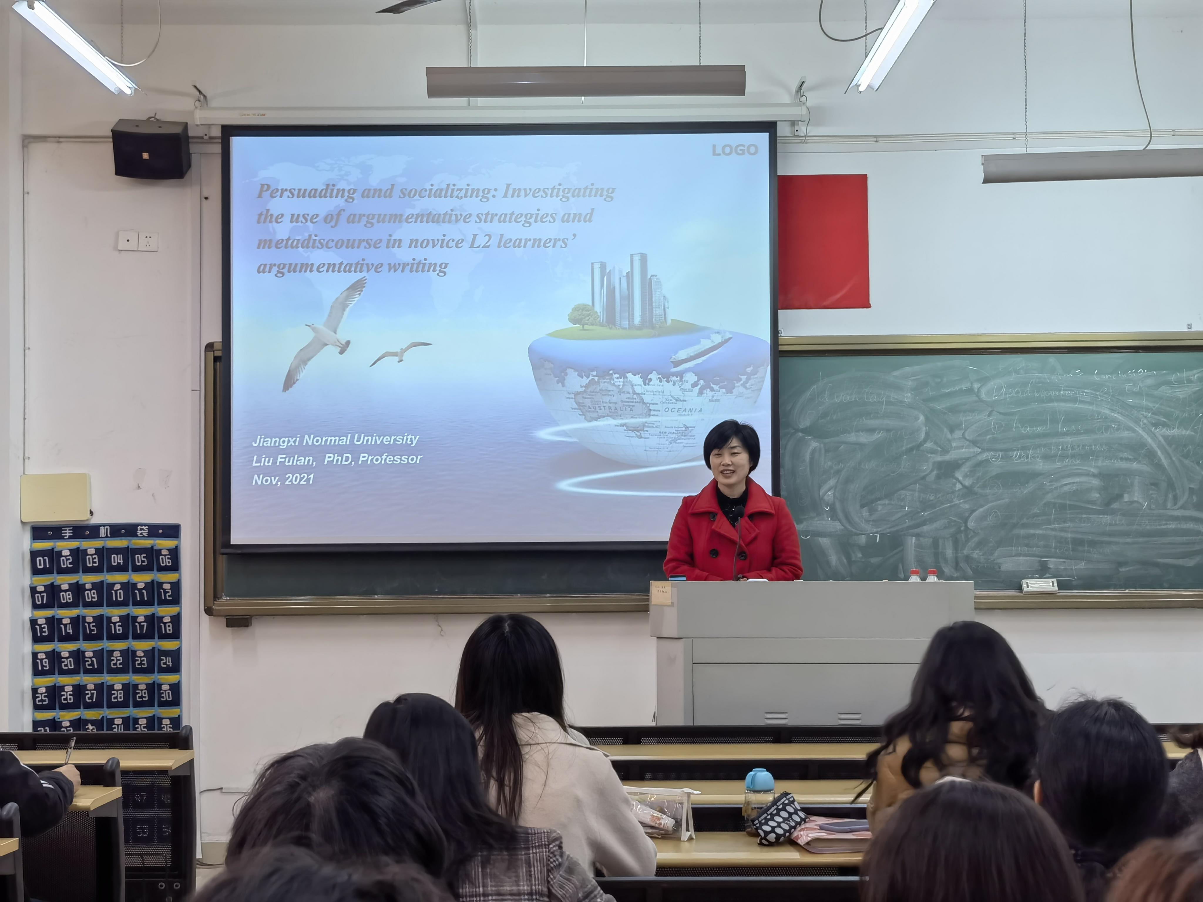 为推动学院教育与学术工作的开展,进一步帮助学院教师掌握论文写作和课题申报的技巧,11月26日上午9:30,江西师范大学williamhill威廉希尔中国副院长、博士生导师刘辅兰教授在W3105开展了学术讲座《英语学习者议论文写作中的论证策略与元话语分析》,学院科研骨干教师到场聆听。