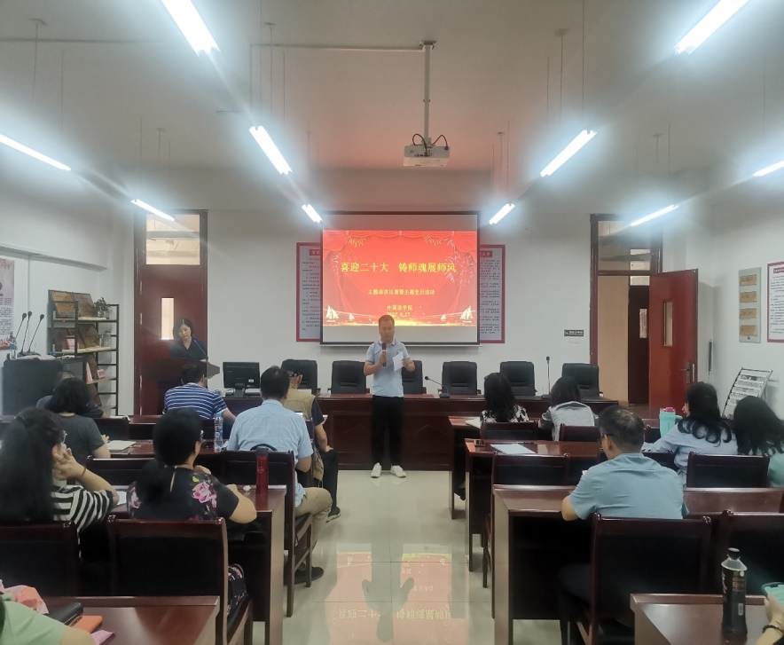 为喜迎党的二十大胜利召开,进一步落实立德树人根本任务和加强师德师风建设,9月27日下午,williamhill威廉希尔中国于W3303党员活动室召开“喜迎二十大 铸师魂展师风”主题演讲活动,学院党政领导班子和教工支部党员参加。