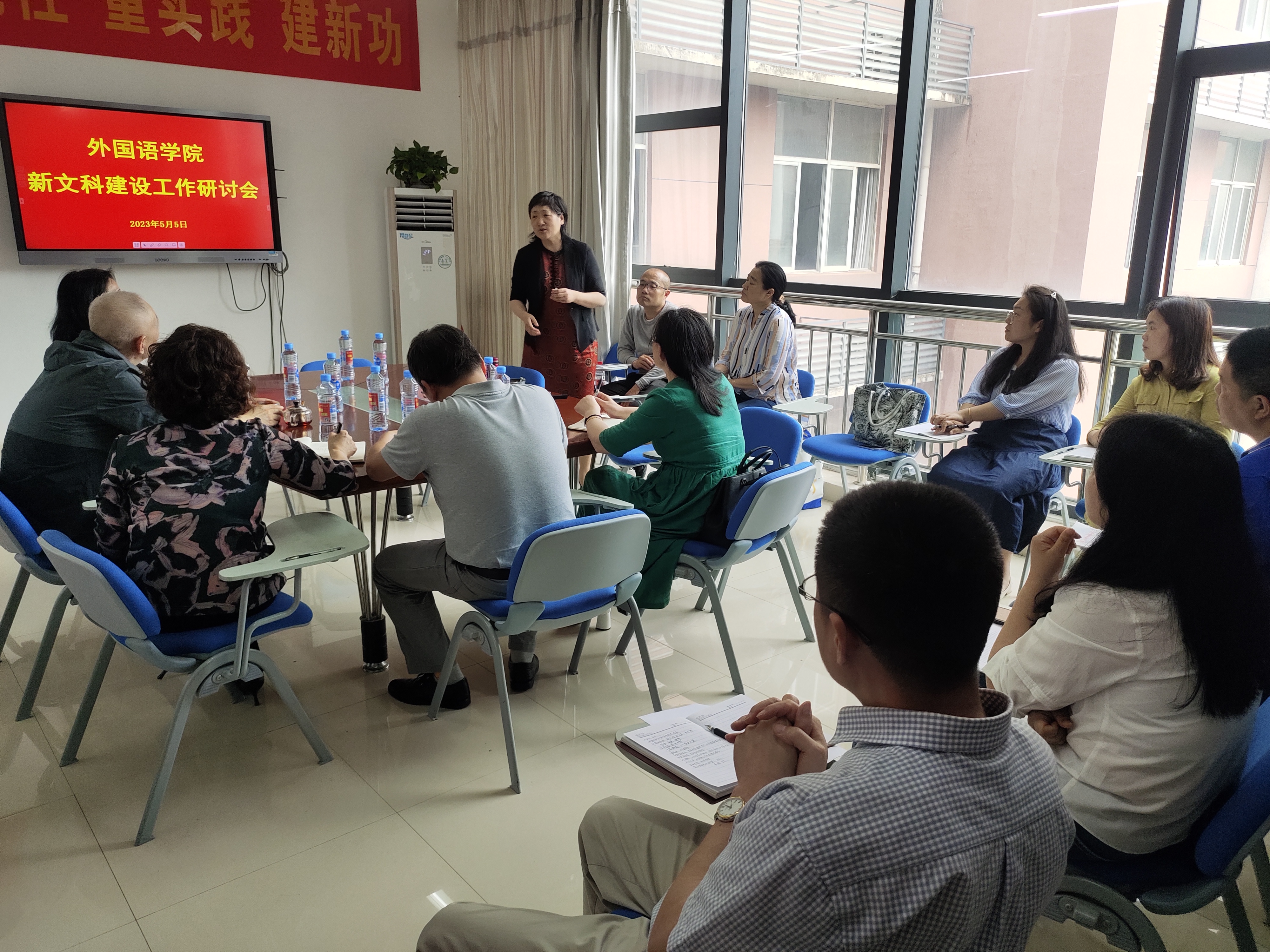 5月5日下午,williamhill威廉希尔中国在文科楼群W3229召开新文科建设研讨会,会议特别邀请了山东大学williamhill威廉希尔中国、翻译学院院长王俊菊教授。williamhill威廉希尔中国党委书记廖雄飞、院长黄教珍、副院长张礼牡、副院长张文星以及各专业负责人、骨干教师参加会议。