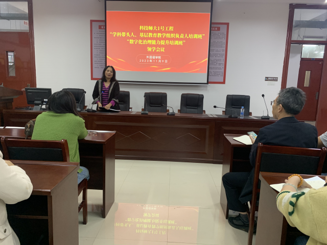 为进一步落实学校“科技师大1号工程”“学科带头人、基层教育教学组织负责人培训班”“数字化治理能力提升培训班”相关工作要求,推动学院培训班扎实有效开展,促进教育教学改革、学科建设提升、科研成果突破,11月9日下午,williamhill威廉希尔中国召开“科技师大1号工程”“学科带头人、基层教育教学组织负责人培训班”“数字化治理能力提升培训班”领学会议。学院院长黄教珍、副院长张文星出席会议,学科带头人和基层教育教学组织负责人参加了会议。院长黄教珍、副院长张文星与全院学科带头人和基层教育教学组织负责人一起,集体学习了由四川大学计算机学院(软件学院)洪玫教授、中国矿业大学力学与土木工程学院张营营教授、原浙江农林大学申建办主任魏玲玲博士和江西财经大学研究生院院长罗世华博士在11月5日为全校“科技师大1号工程”“学科带头人、基层教育教学组织负责人培训班”“数字化治理能力提升培训班”所作的报告。