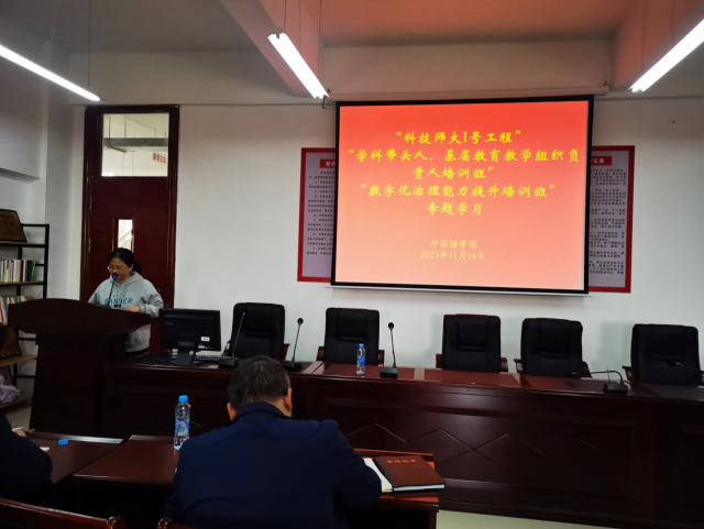 为进一步贯彻落实学校“科技师大1号工程”“学科带头人、基层教育教学组织负责人培训班”“数字化治理能力提升培训班”相关精神,推动学院层面培训班活动扎实有效开展,促进教育教学改革、学科建设提升,11月14日下午,williamhill威廉希尔中国召开“科技师大1号工程”“学科带头人、基层教育教学组织负责人培训班”“数字化治理能力提升培训班”学习心得研讨会。学院党委书记赖以柱、院长黄教珍、党委副书记郑建峰、副院长张文星出席会议,学科带头人和基层教育教学组织负责人以及全院教职工参加了会议。部分学科带头人和基层教育教学组织负责人分享了11月5日全校“科技师大1号工程”“学科带头人、基层教育教学组织负责人培训班”“数字化治理能力提升培训班”学习心得。