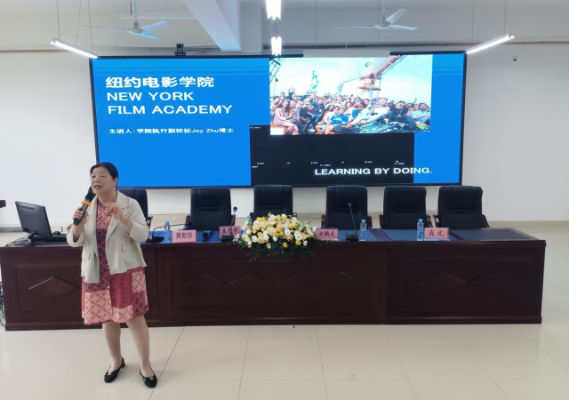 随后,朱宇华博士还分享了纽约电影学院的宣传视频,结合纽约电影学院教育培养成果,详细介绍了纽约电影学院如何为不同专业的学生设计跨学科的学业规划。