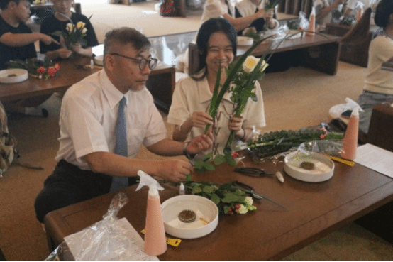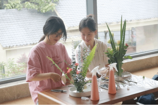 仪式结束后,会馆举办了“南昌中日交流之窗——中日插花体验活动”。在专业花艺师的指导下,学生代表们认真挑选花材、搭配色彩、调整造型,最终制作出一份份精美的插花作品。师生纷纷表示,通过这次体验活动加深了对花艺文化的理解,提升了艺术修养。