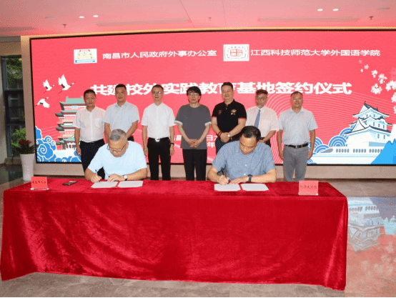 图为 科师大外院党委副书记郑建峰与市外办副主任曾建民正式签署协议