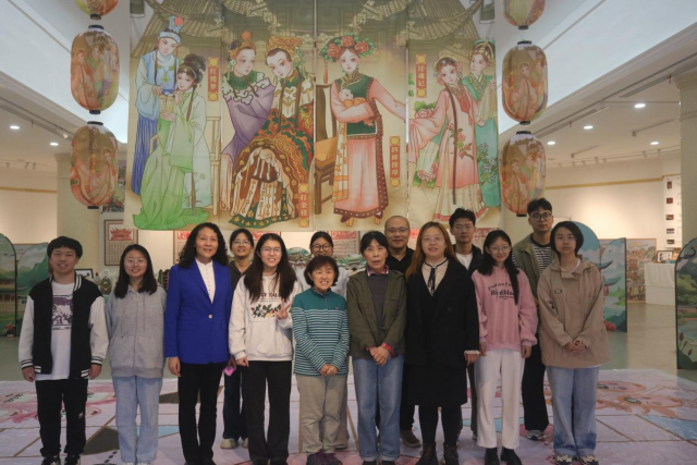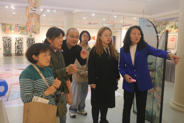 座谈结束后,师生一行前往我校前湖美术馆圆厅一楼参观乐平古戏台文创产品主题展览。项目负责老师赵勤向师生一行介绍,展览通过现代技术围绕乐平古戏台、赣剧等元素制作了一系列文创产品以传承展示赣剧文化。两位老师沉浸式体验,不断感叹中华优秀传统文化之博大精深。