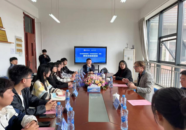 交流会结束后,马克西姆·甘比尼一行与商务英语(中法联合培养)专业师生举行交流座谈会,就法国高校基本情况、学习生活方式、学业规划、社团活动、考研升学、实践提升、考核标准、就业质量等话题进行交流并回答学生提问。