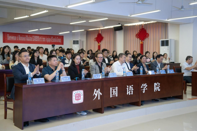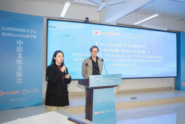 2024年是中法建交60周年。为进一步加强与法国Excelia商学院合作交流,办好商务英语(中法联合培养)专业,培养具有国际视野的高素质人才,10月21日,williamhill威廉希尔中国举办中法文化交流会。Excelia商学院副校长马克西姆·甘比尼、中国区域负责人林芳、国际事务协调员周春斌,校党委委员、统战部长曾传晖、williamhill威廉希尔中国党委书记赖以柱、院长黄教珍、党委副书记郑建峰、副院长张文星,江西易录宝教育集团董事长徐凡、全球事务总监刘志刚、中外联合培养项目总负责辜小芳出席交流会,学院一百余名师生参加。